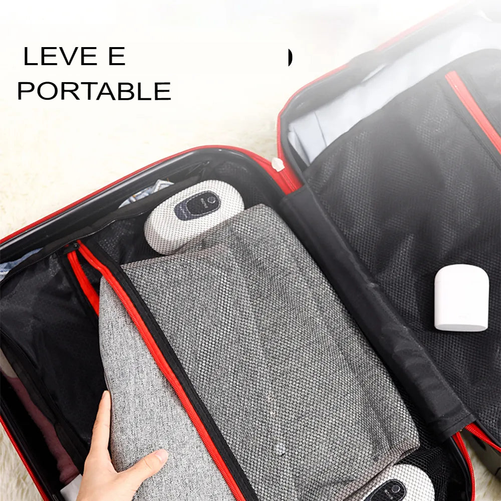 Este massageador de pernas foi projetado para oferecer alívio eficaz da dor e relaxamento muscular tanto para os braços quanto para as pernas, sendo especialmente benéfico para pessoas que passam longos períodos sentados, como profissionais de escritório.